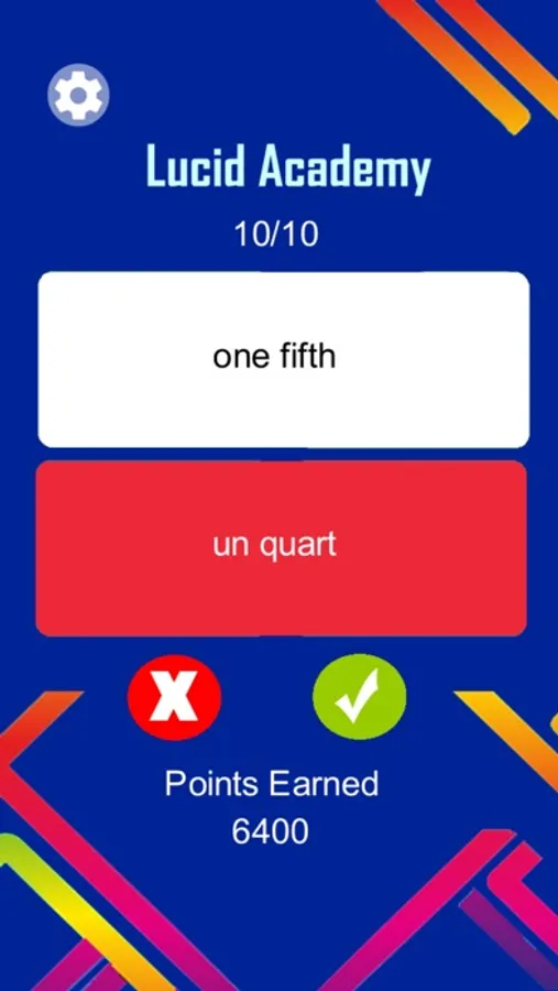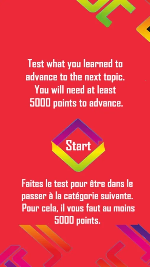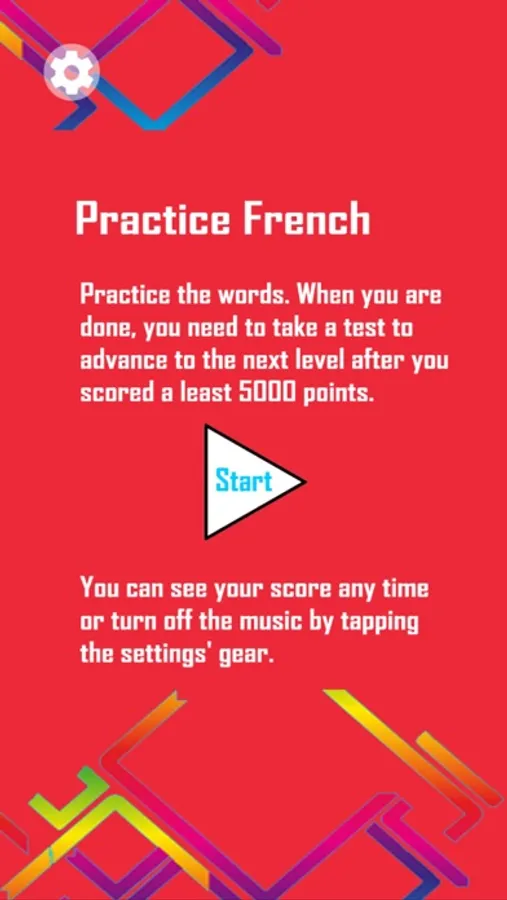 You will need to score at least 5000 points to advance from one topic to the next. You can see your score any time or turn off the music by tapping the settings' gear.