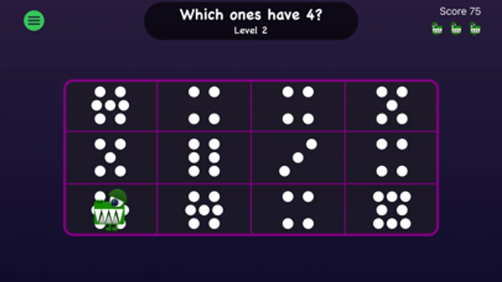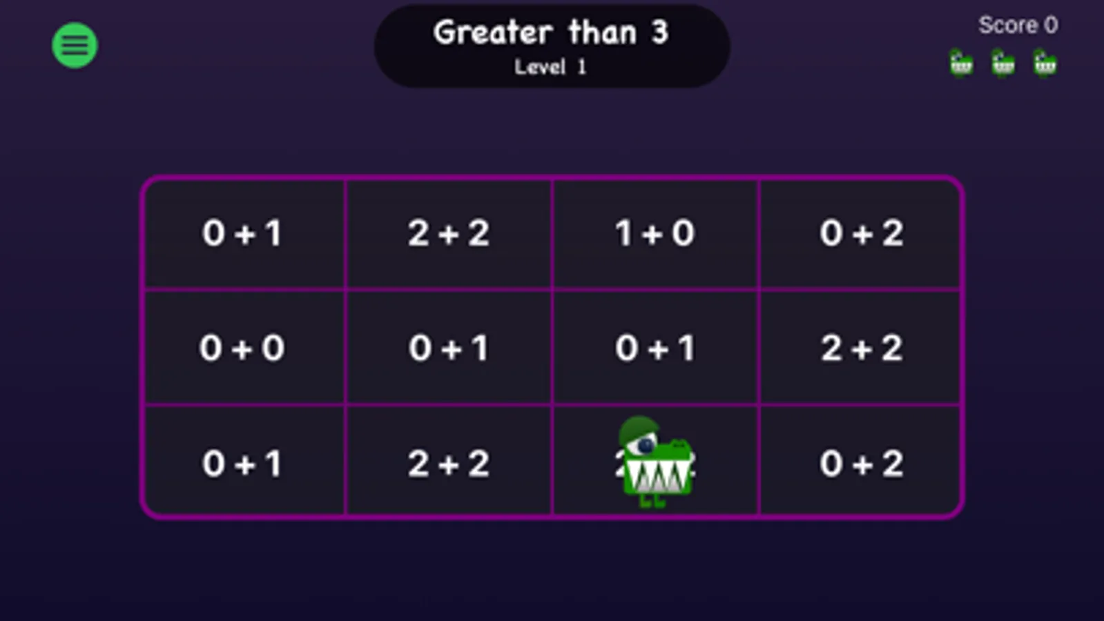 Welcome Number Chomp Fans! Number Chomp Jr is an entry-level math game to help practice various subjects like shapes, even / odd numbers, counting, equality, addition, and subtraction.