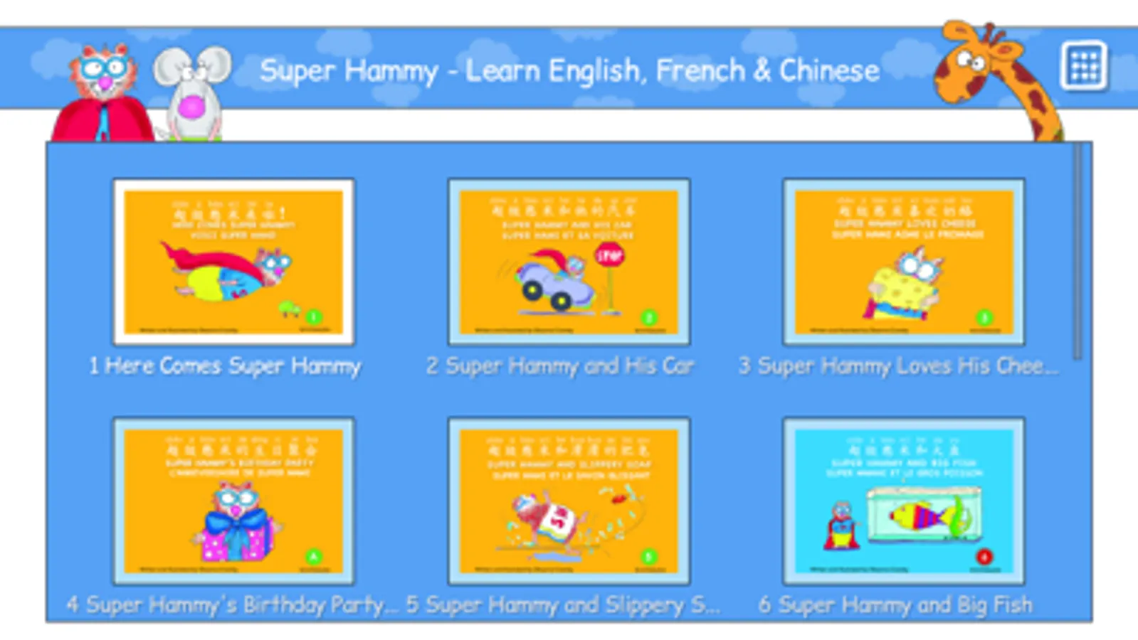 Super Hammy is a superb little hamster who goes on big adventures with his friend Little Mouse. His funny stories are told in small sentences – just right for beginning language learners in any language. This set offers three languages at the same time to help you learn English, French and Chinese in a fun, practical way through the joy of reading, and so you can master Canada’s official languages no matter your mother tongue!