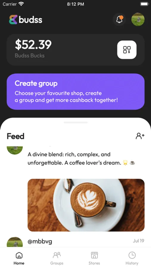 You and your “Group Chats” earn instant rewards (ex. Cash Back) whenever someone in a group buys to spend at stores on Budss’ mobile app.