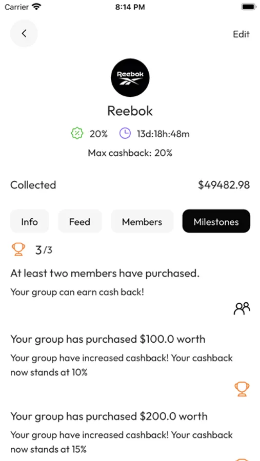 You and your friends can Create & Join “Group Chats” to earn instant rewards (ex. Cash Back) at your favorite brands every time you buy or when your "Group Chats” buy.