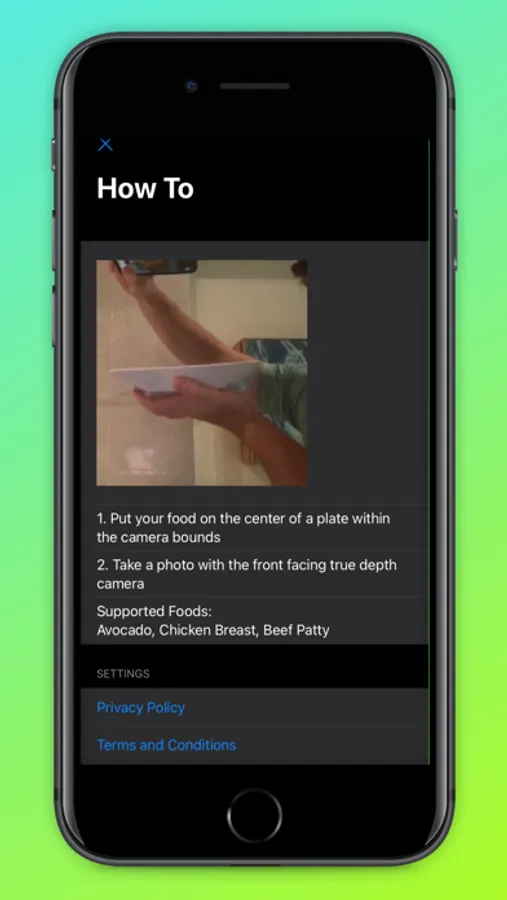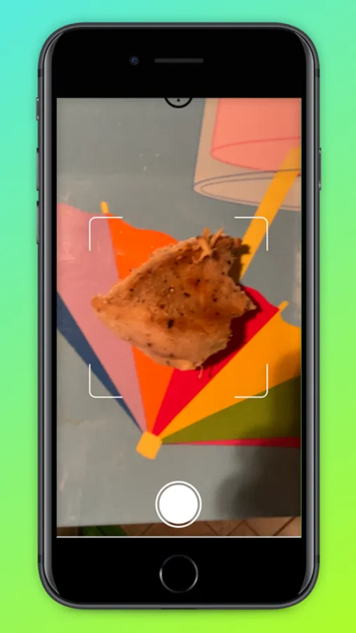 For best results, center food in the camera guide and take the photo straight above. Macros and calories are calculated through depth data, so a straight-on photo is best.