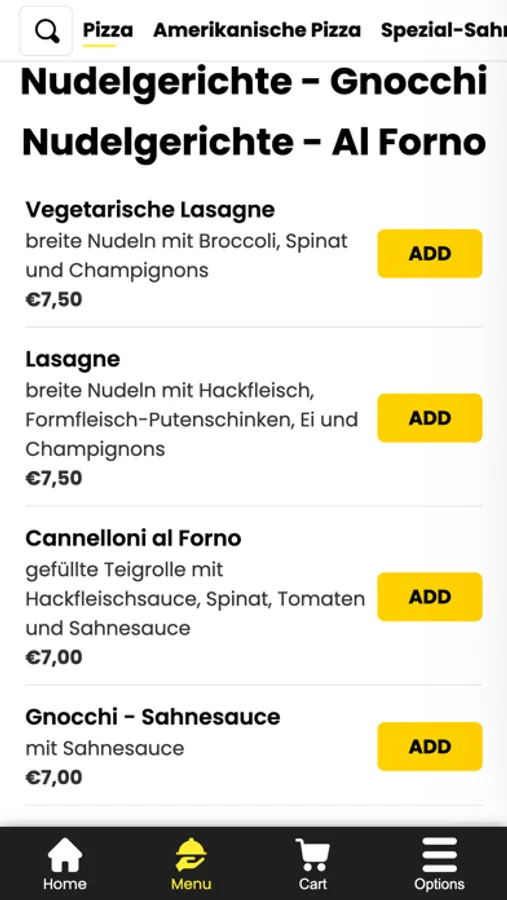 - Durchsuchen Sie die Speisekarte des Restaurants und sehen Sie sich alle anpassbaren Optionen im Voraus an