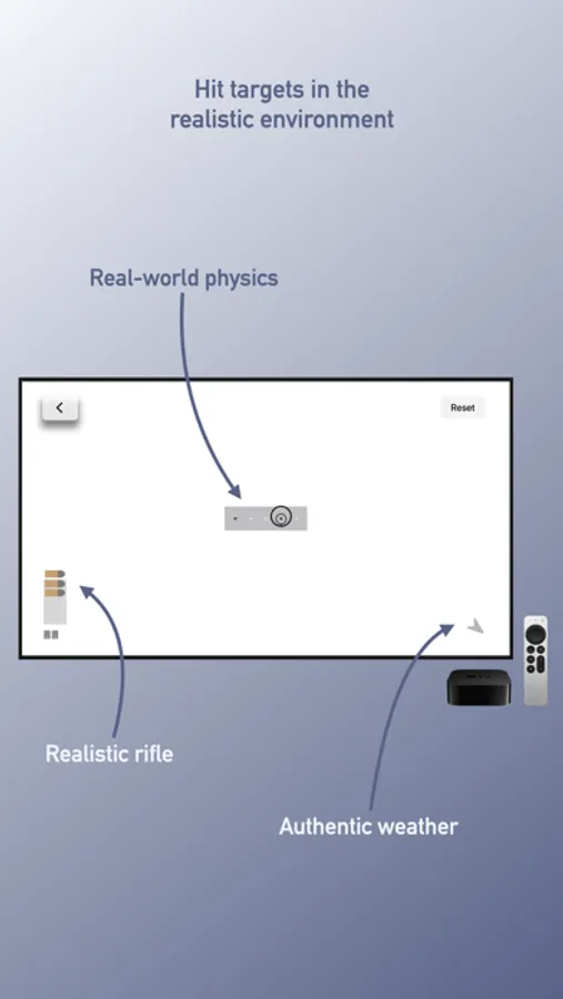 Have you ever wondered how difficult it is to hit the five biathlon targets? With BiathAim's real-world physics simulation you can try it yourself! With your iPhone as a controller and another iPhone, iPad or Apple TV as a host, you can enjoy the realistic shooting with authentic weather data. When you log in to the Apple's Game Center, you can also participate in daily challenges and weekly events, and try to beat other players in the leaderboards.