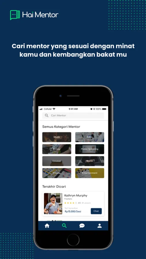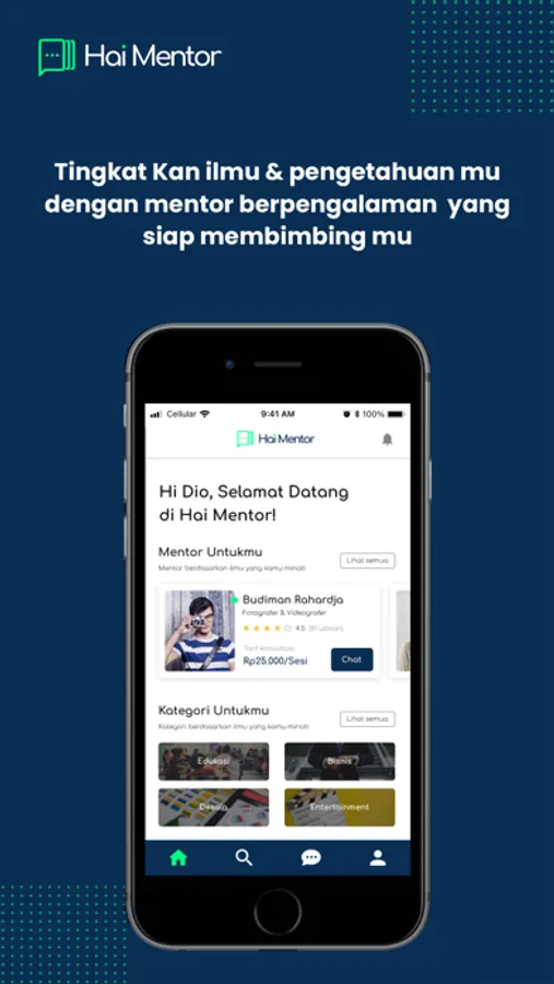 Dengan Hai Mentor kamu bisa menelusuri berbagai mentor ahli dari berbagai bidang yang ingin kamu kuasai mulai dari mentor Akademik, Seni & Kreatif, Teknologi, Bisnis, Kesehatan, Entertaiment, Psikilogi hingga Rohani.