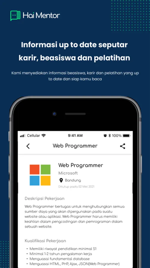 Hai Mentor adalah aplikasi digital education yang membantu kamu menemukan mentor terbaik dan sesuai untuk berkonsultasi dan mengatasi masalah mu dalam mempelajari suatu hal.