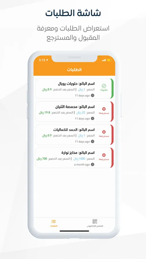 تطبيق التاجر “البائع” يسمح للبائع بمسح كود الخصومات والعروض من الزائرين.