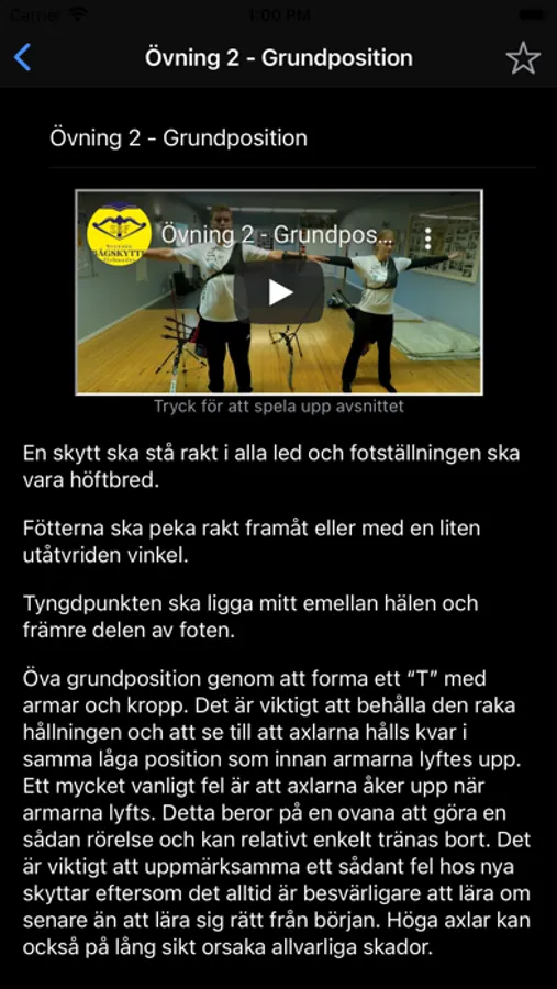 Bågskytte för alla ger en introduktion till bågskytte med information om skjutstilar, träning och tävlingsformer. Den innehåller nyttig information om hur man blir en bättre skytt. Appen innehåller beskrivningar av grundläggande övningar med bilder och filmer som visar rätt utförande. Det finns även avancerade ämnen från proffsskyttar om styrketräning, teknik och mentala förberedelser.
