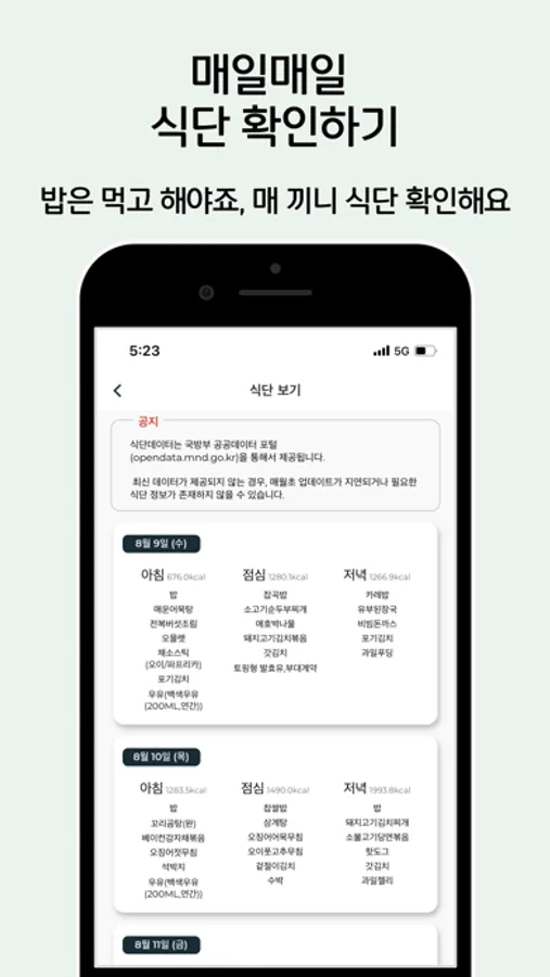 - 식단확인: 우리 부대 식단을 등록하고 실시간으로 확인해요