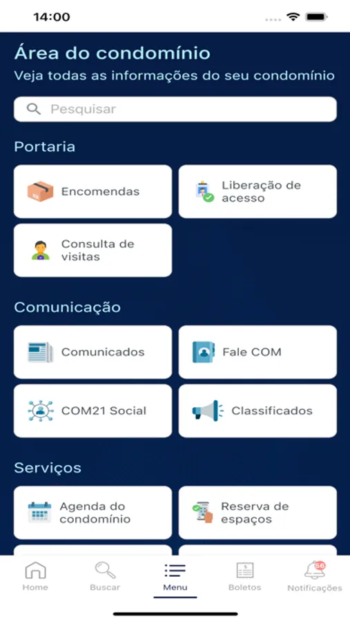 Visualizar cobranças em aberto da sua unidade e obter 2ª via de boletos (com recálculo automático de multas e juros);