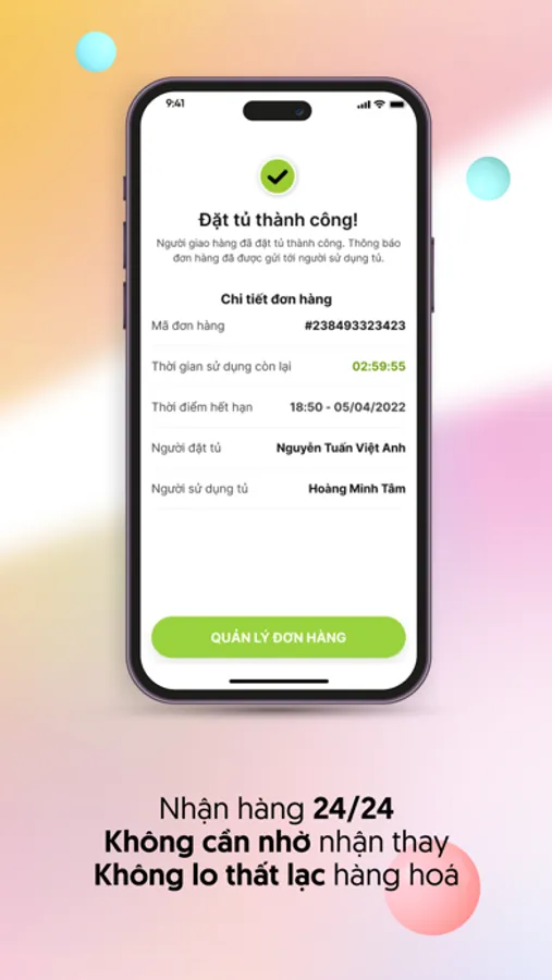 Mã mở tủ chỉ được cung cấp cho người dùng, tránh lộ thông tin.