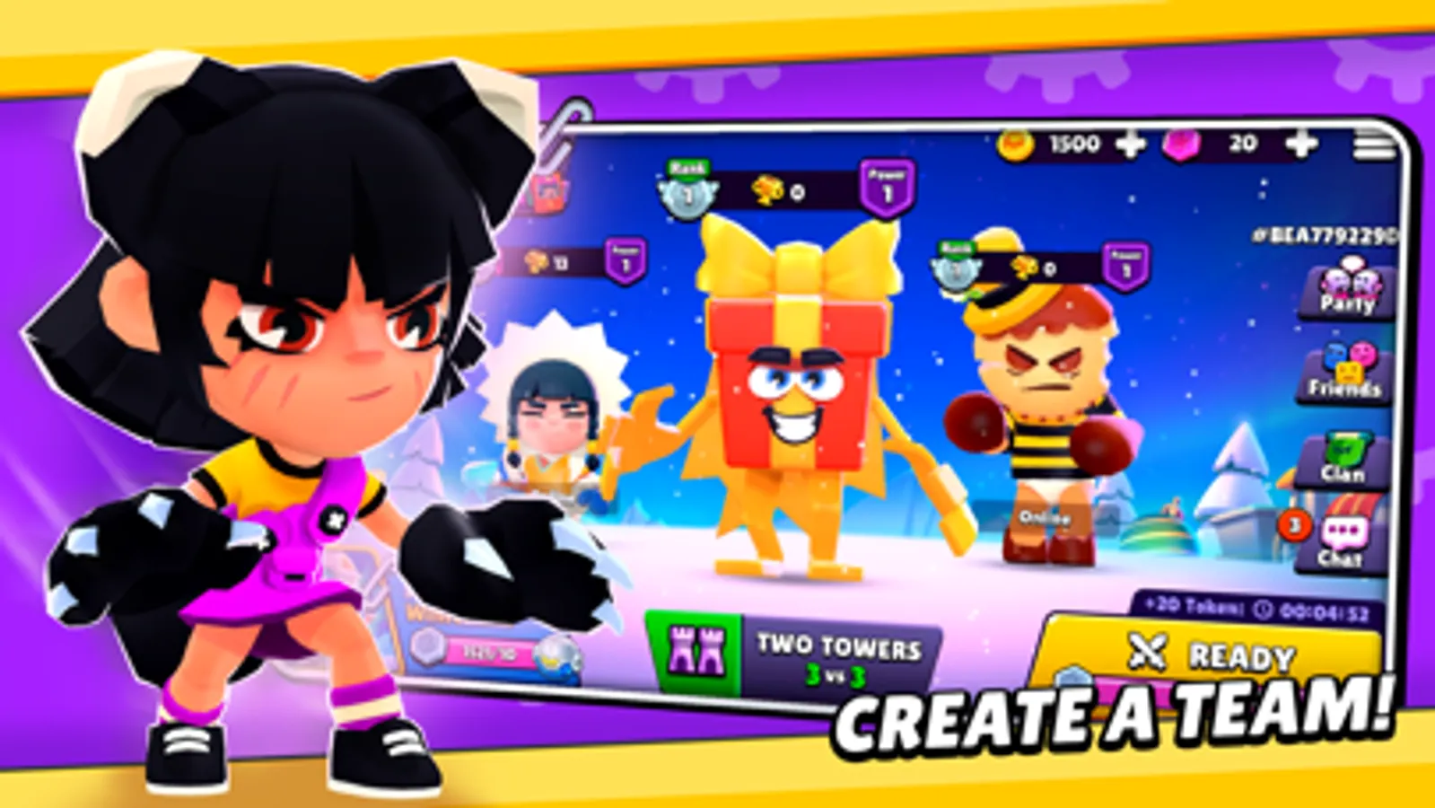 - Create a party for real-time 3vs3 battles against players from all around the world.