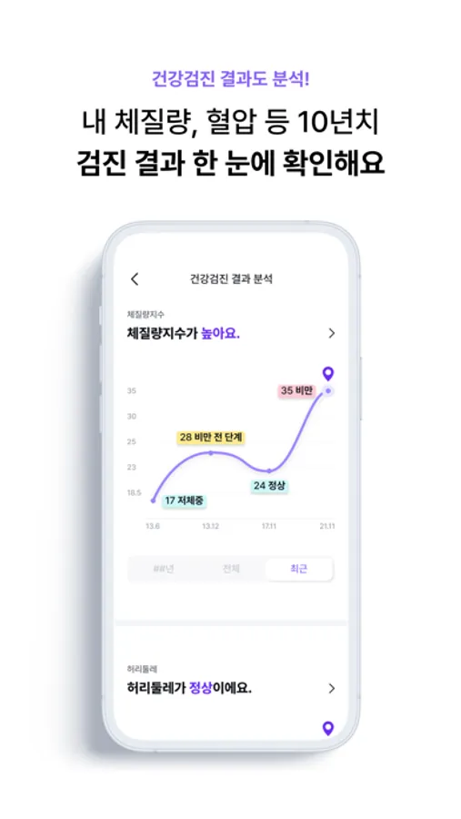 필라이즈에서 간편하게 10년치 건강 검진 기록을 불러오고, 건강 변화를 확인하고 기록하세요!