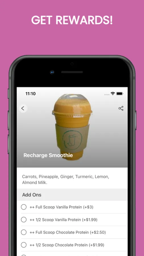 The Pomona Raw Fusion app is a convenient way to skip the line and order ahead. Rewards are built right in, so you'll collect points and start earning free menu items with every purchase.