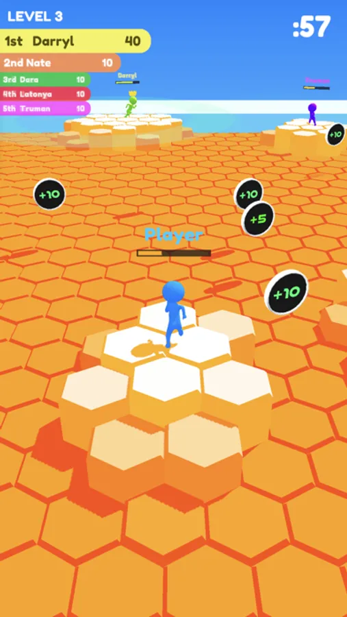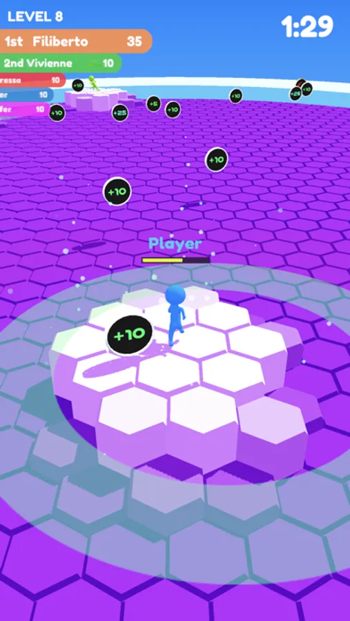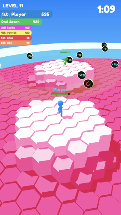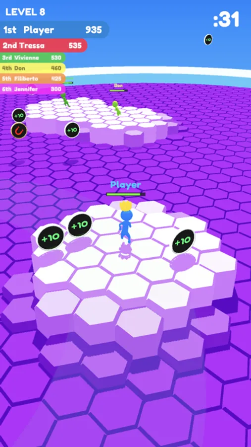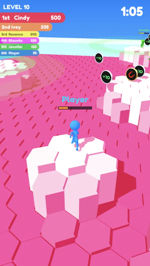 Race on top of rising and falling pylons to collect powerups - and survive with the highest score!
