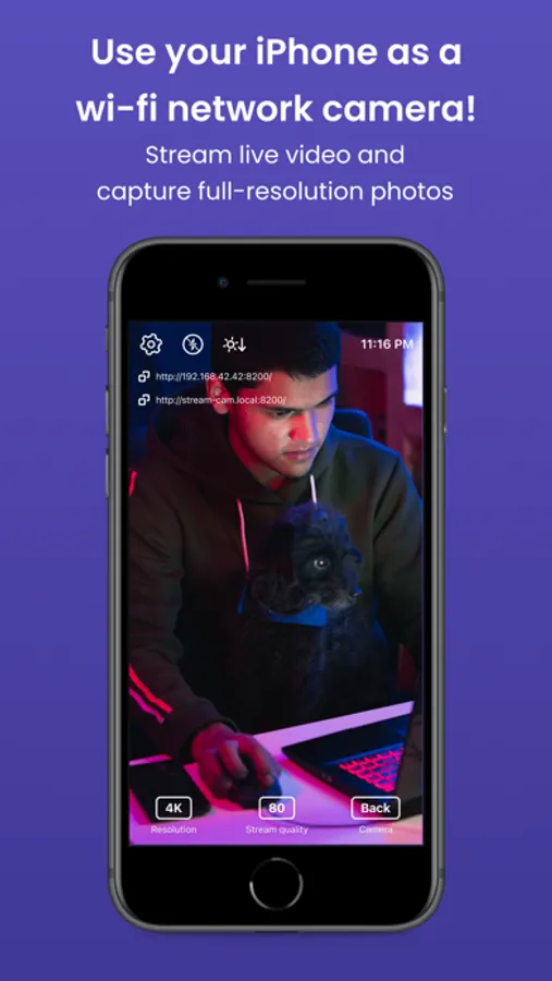 • Switch between all cameras and supported resolutions on your device, up to 4K