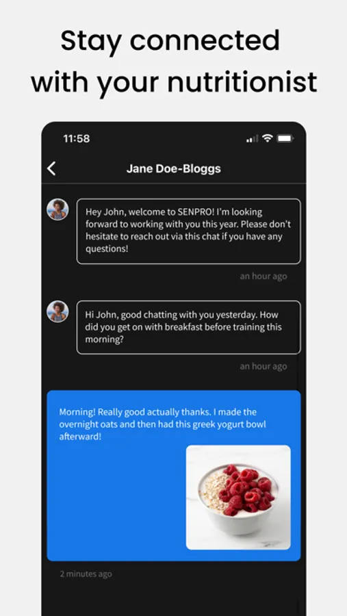Through our in-app messenger, clients and nutritionists can stay connected remotely. Clients can receive the feedback & support they need wherever they are in the world.