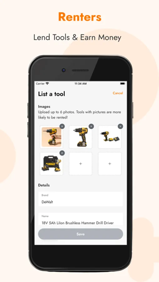 Tool and equipment owners will be able to list their tools within the app in a matter of