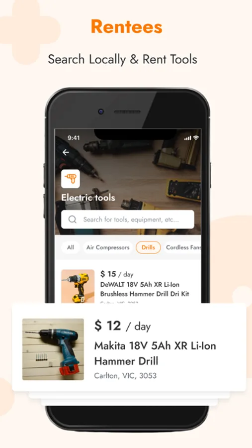 Upon locating their desired tool, once the tools have been selected to rent the renter can then communicate with the lister via an in-app messaging service to ask for further information and discuss a pickup time and location. The aim is to create a community whereby the app facilitates safe, affordable and secure, 24/7 equipment hire for households, handymen, builders, small and large businesses.