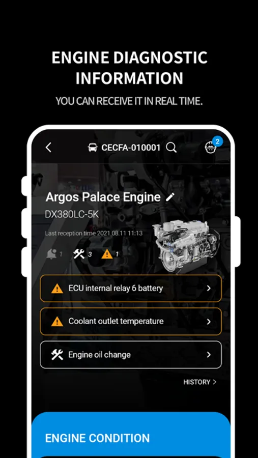 > Various sensor information of the engine can be inquired as well as the engine starting status.