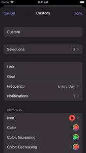 You can make custom items and track your habits. Set up frequency and check with ease. Get notifications and get things done. Check calendar and see how you're doing it.