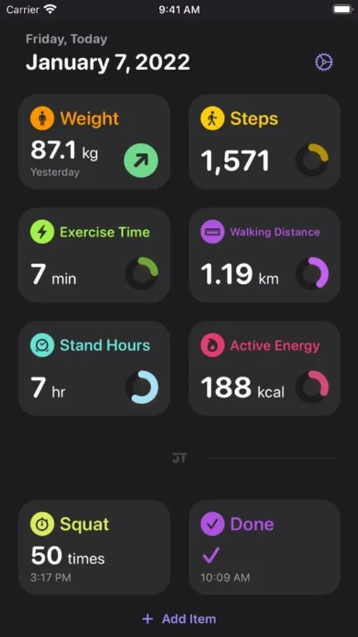 Keep track of numbers such as weight, push-up counts, squat counts with JustTrack. You can combine it with other health related info such as steps, exercise time and calories. This will give you insight and help you achieve goals.