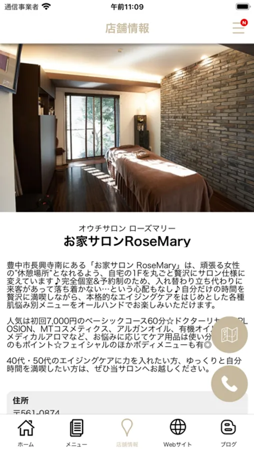 店舗のマップが表示され、地図アプリとも連携しているので、初めてのご来店の時も簡単に見つけることができます。