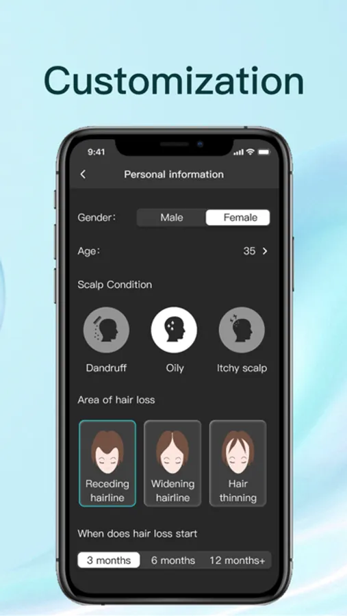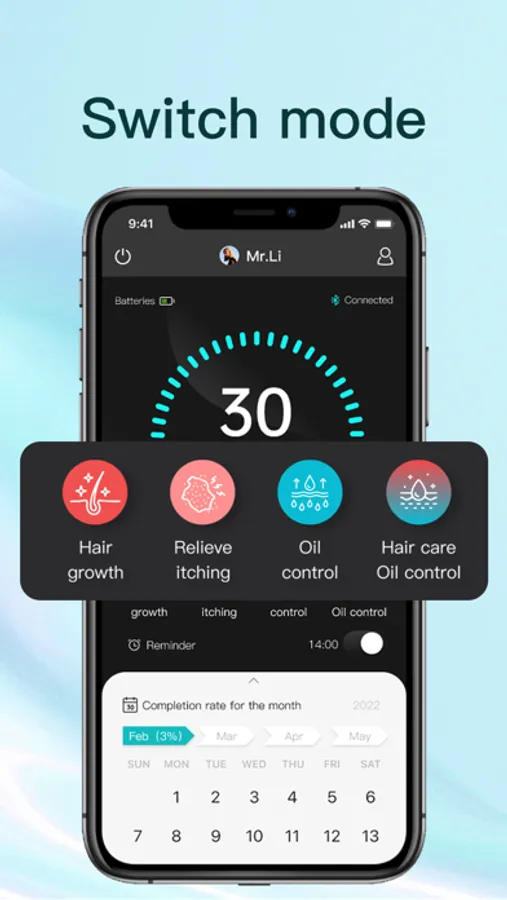 This app can be connected to the device through Bluetooth, and you can experience four different functions by opening the app, such as hair care, itching removal, oil control, hair care and oil control. At the same time, we provide users with usage reminders and visual record pages .
