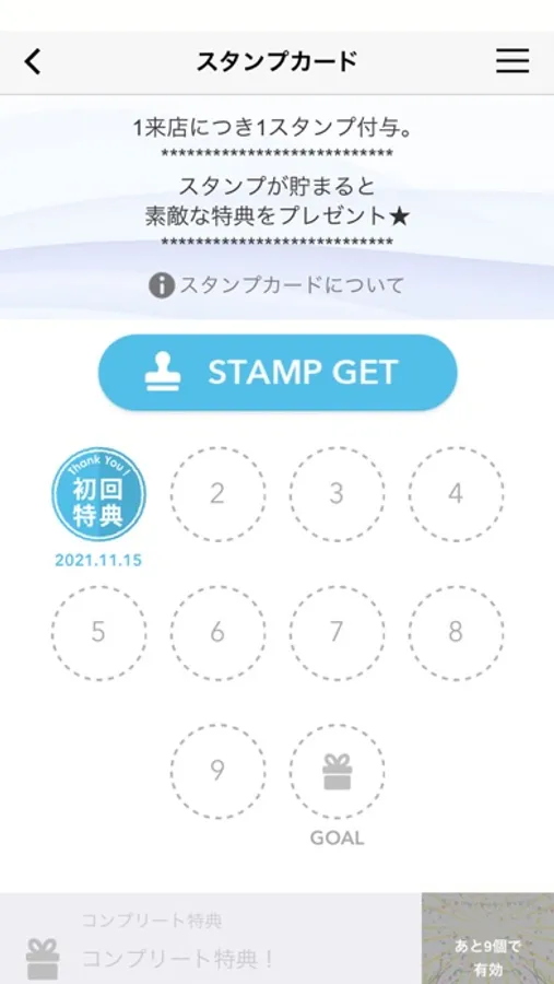 たくさん貯めていただくと次回使える特典をご用意しております。