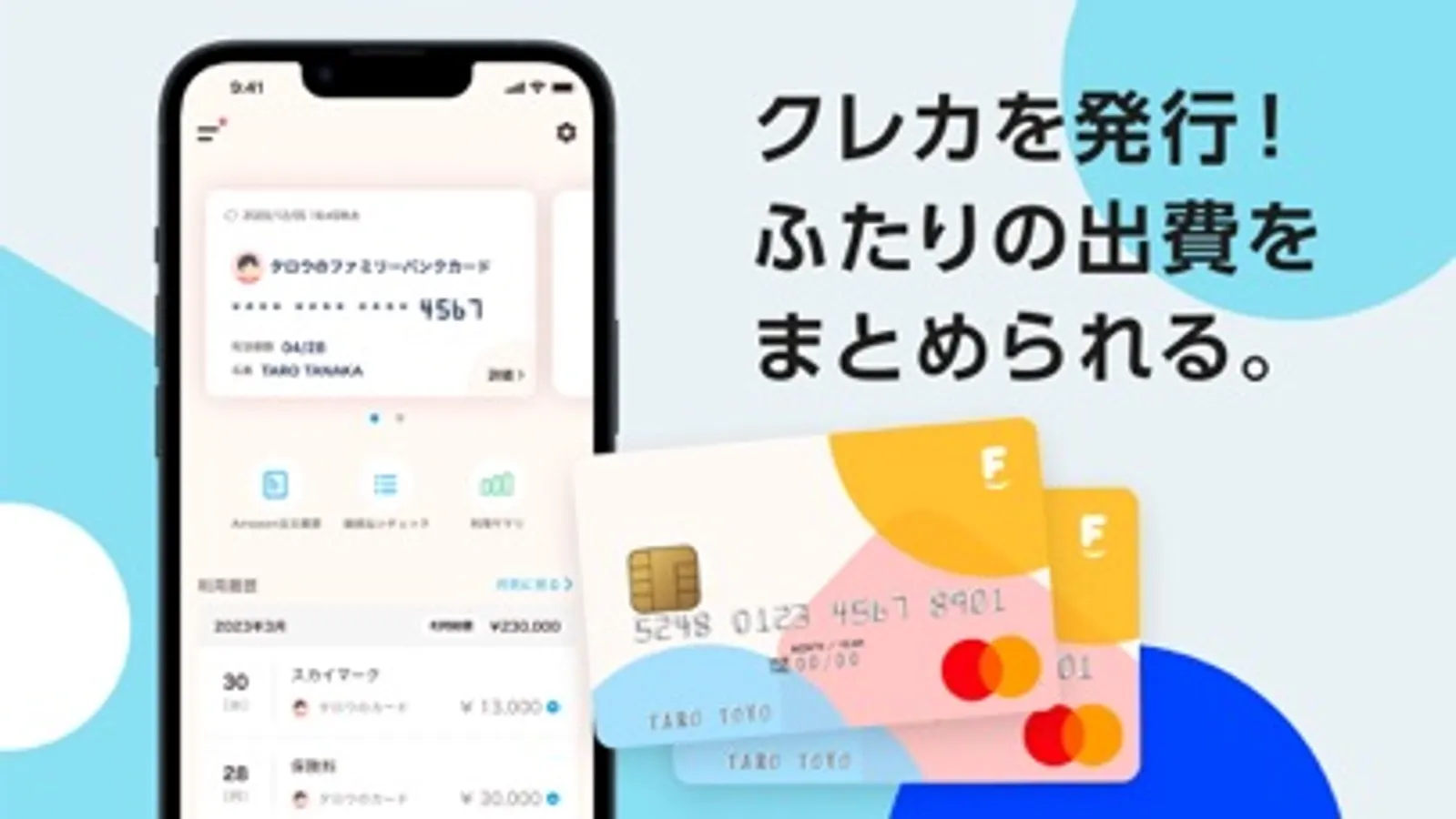 ・「夫婦で使えるクレジットカード(共同カード)」の発行(支払い元が共同口座になっているカードを家族分発行)、利用明細の可視化