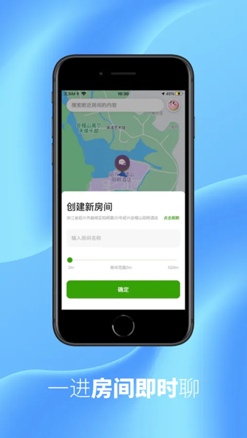在叽哩咕噜中,用户可以在当前位置,创建一个设定可见范围的房间,和进入这个房间的用户即时通信。