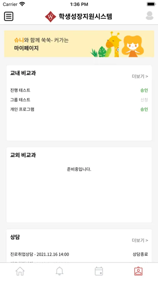 3. 상담 : 취업상담, 심리상담, 학습상담 신청 서비스를 제공합니다.