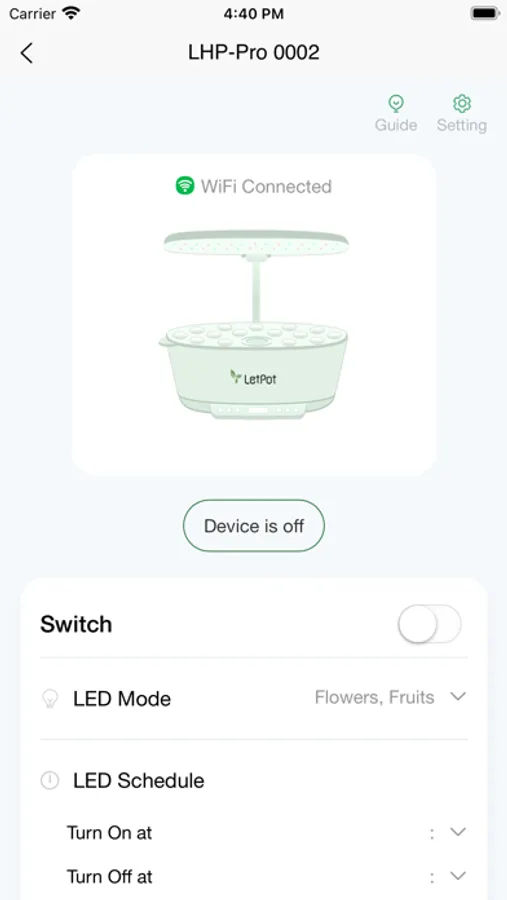Setup LetPots according to your environmental settings, or monitor the device status in real-time.