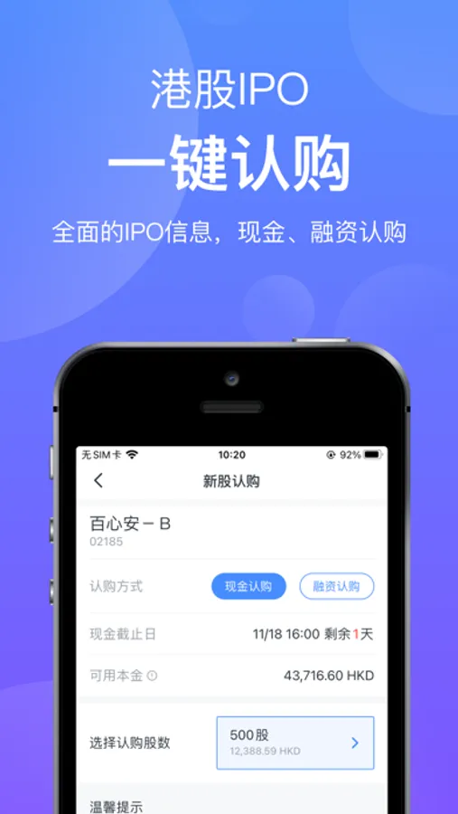 4、支持港股现金和融资IPO,轻松参与港股打新市场