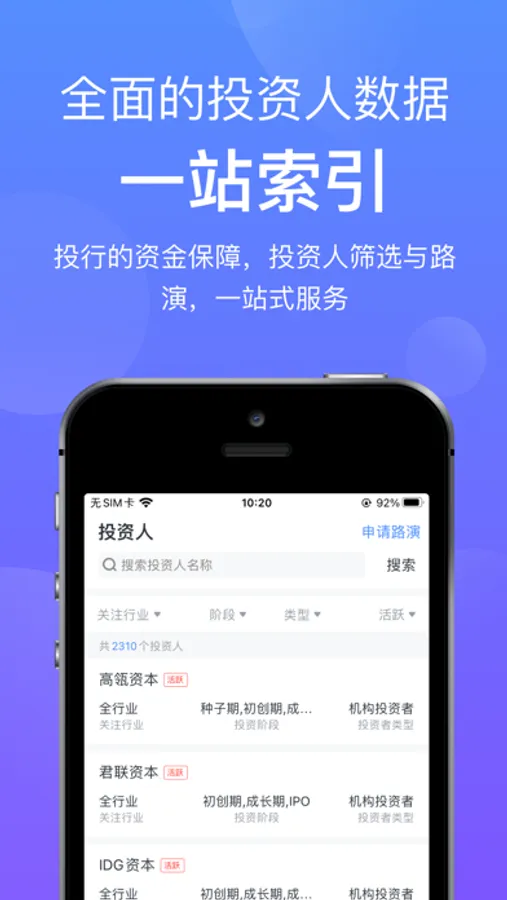 5、全面的投资人数据,投资人筛选与路演,一站式服务