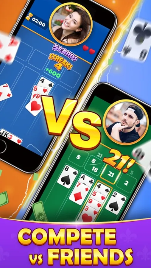 • Create stacks of 5 cards or Streak to score higher bonus points, and don't go bust.