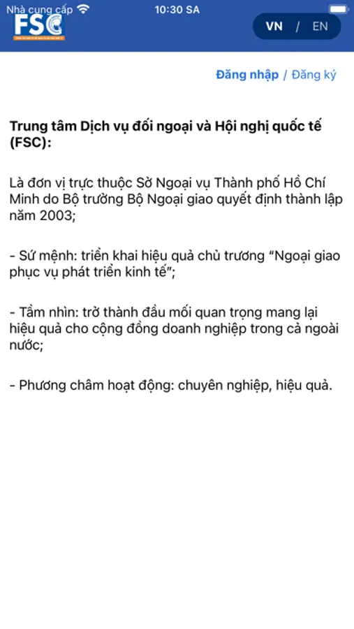 Ứng dụng FSC SERVICES do Trung tâm Dịch vụ đối ngoại và Hội nghị quốc tế (FSC) nghiên cứu và phát triển do Bộ trưởng Bộ Ngoại giao quyết định thành lập năm 2003, sứ mệnh triển khai hiệu quả chủ trương “Ngoại giao phục vụ phát triển kinh tế, ngoại giao văn hóa” với phương châm hoạt động chuyên nghiệp, hiệu quả, phụng sự toàn cầu.