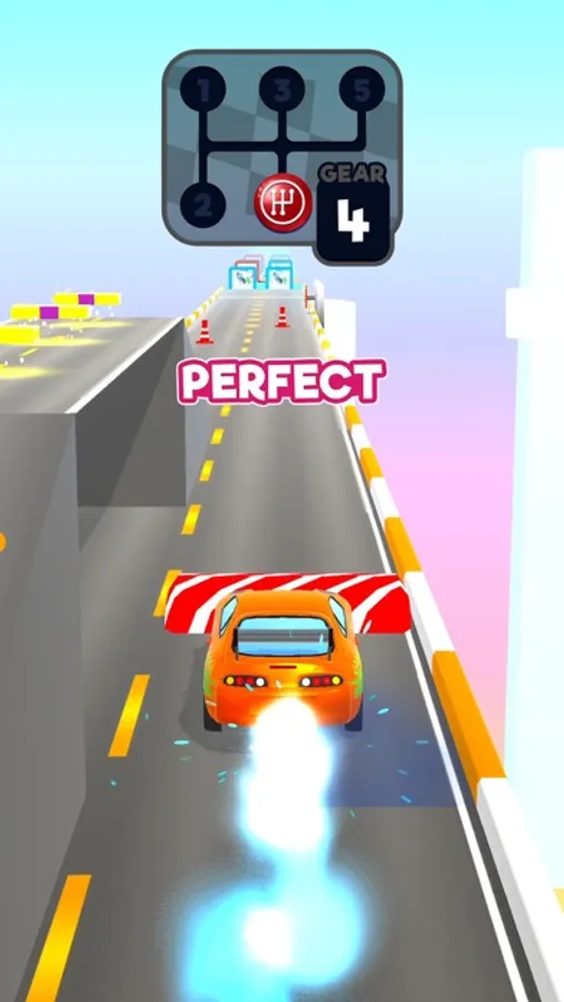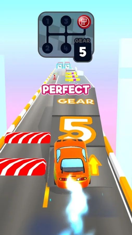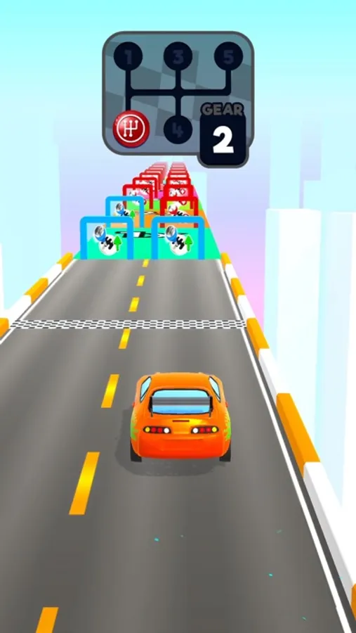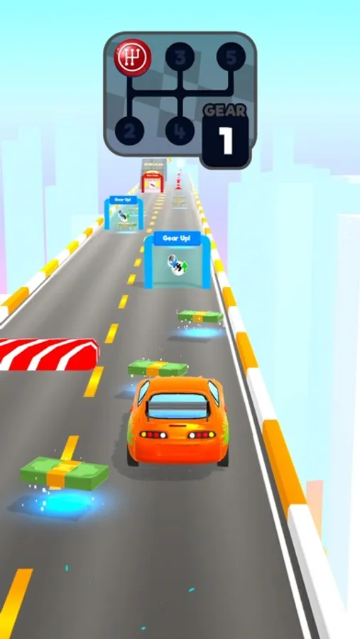 Drive and collect the money on the road, avoid obstacles and pass through the gates in order to change your gear! Adjust your gear according to the number on the ramps!