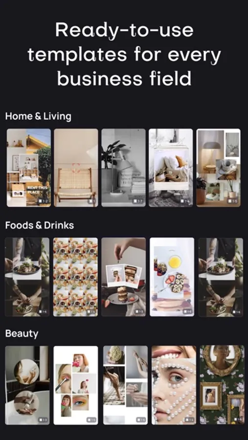 The app provides you with a library of unique templates for various categories - e-commerce, small business, fashion, travel blog, news, personal brand, and more.