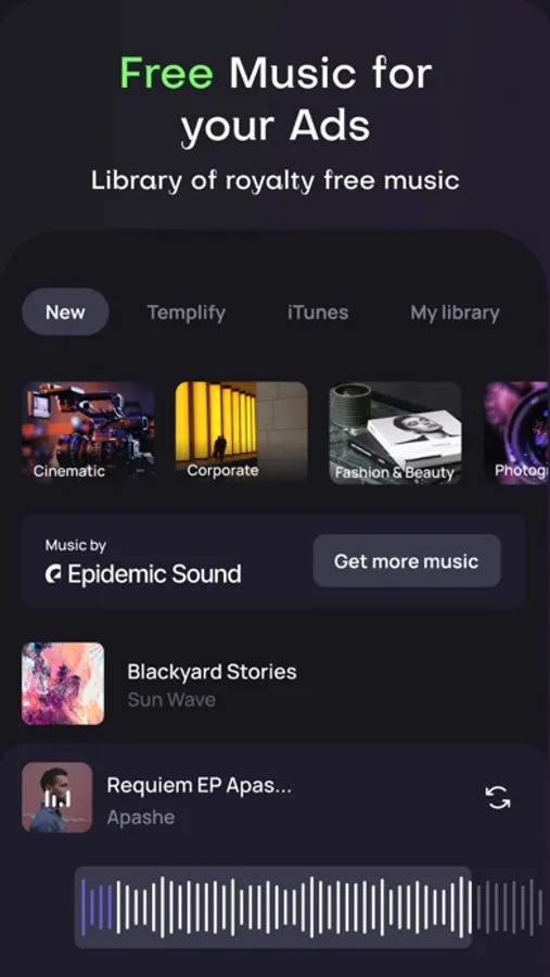 Add ideal musical combinations for your content from our music library, which is updated monthly (!!!!!). Also, you can download music from your library.