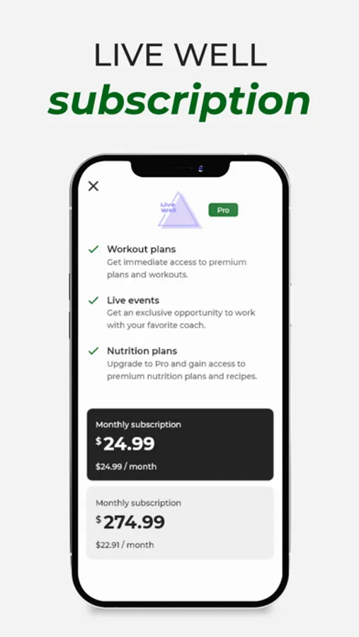 Live Well Health & fitness application contains paid content: