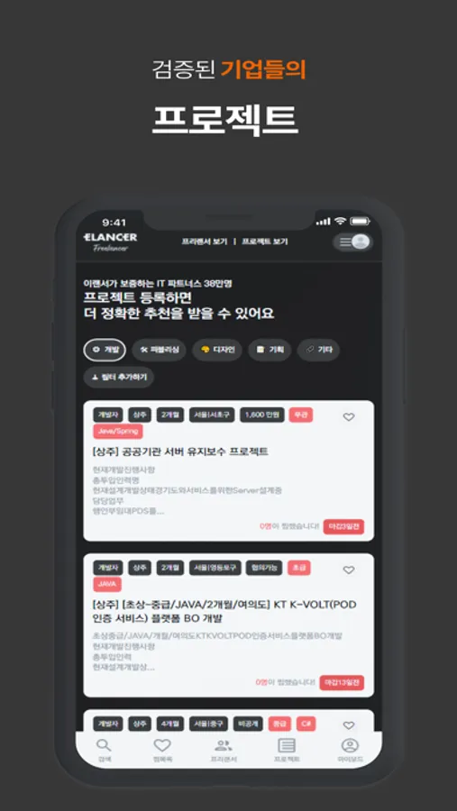 이랜서가 추천하는 검증된 기업의 프로젝트를 만나보세요.