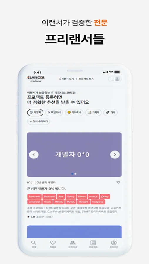 우리는 검증된 프리랜서를 "이랜서"라고 부릅니다.