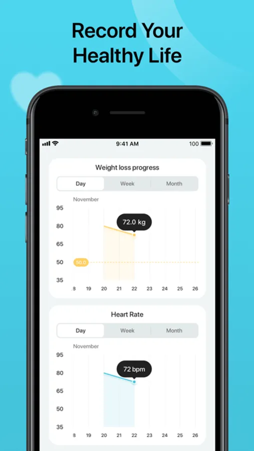 Weight record: punch in the daily weight data to record your physical condition in time!