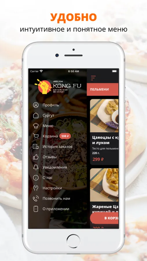 Приложение Kong Fu — это удобный способ заказа еды домой или в офис! Мы готовим наши блюда из качественных свежих ингредиентов и доставляем еду по Сургуту быстро и бережно.