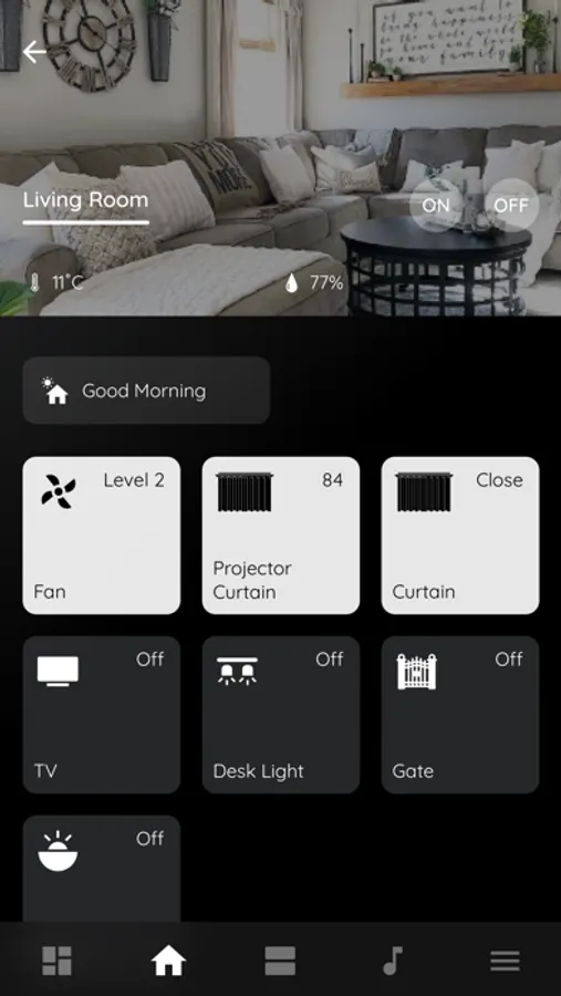 Hogar Pro App users now have the option to choose, arrange the order and customize the individual backgrounds of the rooms inside the app. It also features a toggle switch next to every room that can switch on/off all devices in the room without having to set a scene.