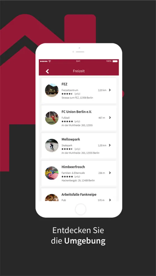 Informieren Sie sich z.B. über Geschäfte, Ärzte, Erstatten und über die Öffnungszeiten in Ihrer unmittelbarer Umgebung.