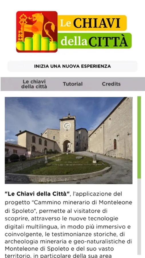 Le Chiavi della Città, l’applicazione del progetto “Cammino minerario di Monteleone di Spoleto”, permette al visitatore di scoprire, attraverso le nuove tecnologie digitali multilingua, in modo più immersivo e coinvolgente, le testimonianze storiche, di archeologia mineraria e geo-naturalistiche di Monteleone di Spoleto e del suo vasto territorio, in particolare della sua area montana.