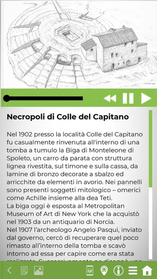 Durante la vostra visita l’APP rileverà i punti GPS all’esterno che attiveranno automaticamente l’audioguida ed apriranno le schede descrittive di riferimento. Il visitatore sia all’esterno che all’interno dei siti potrà sfruttare anche la Realtà Aumentata, puntando la fotocamera del dispositivo sul monumento e su manufatti artistici: in questo modo sarà possibile osservare ricostruzioni ed informazioni aggiuntive direttamente attraverso la fotocamera.