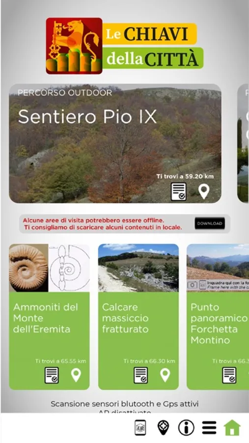 Le Chiavi della Città è una applicazione che sfrutta le funzioni del GPS, dell’Augmented Reality e del Bluetooth per dare al turista una esperienza unica e coinvolgente di visita del patrimonio culturale e naturalistico del territorio di Monteleone di Spoleto.